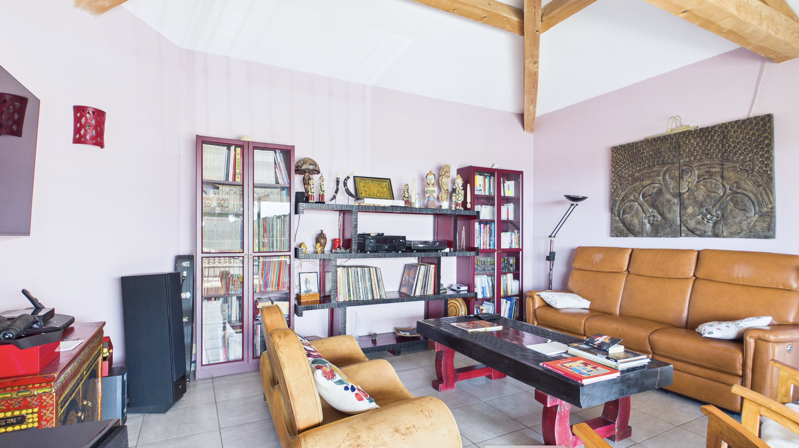 Construite à l’origine en 1959, puis agrandie il y a une vingtaine d’années, cette propriété développe aujourd’hui environ 165 m² habitables et séduit par son architecture originale et atypique.