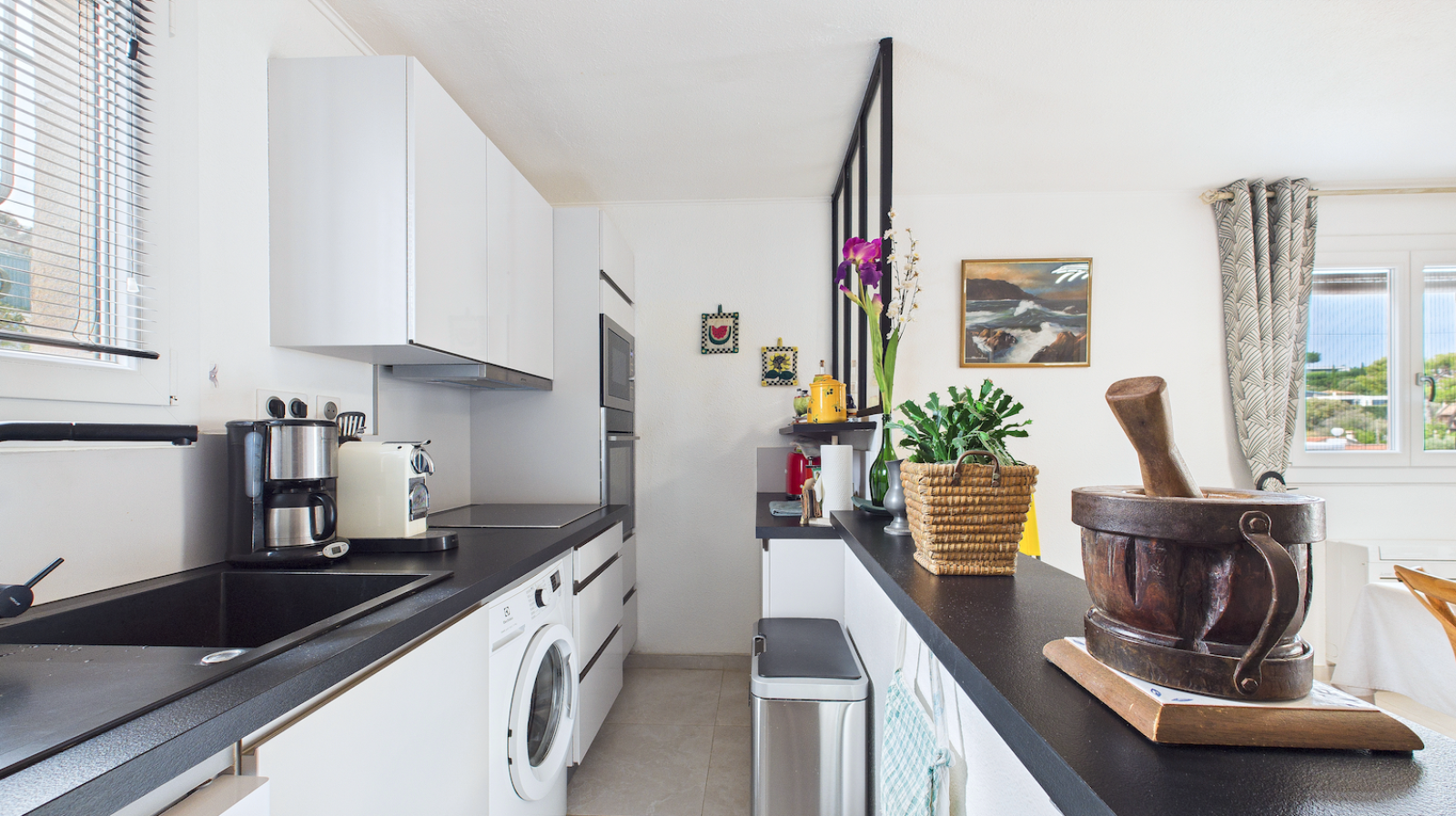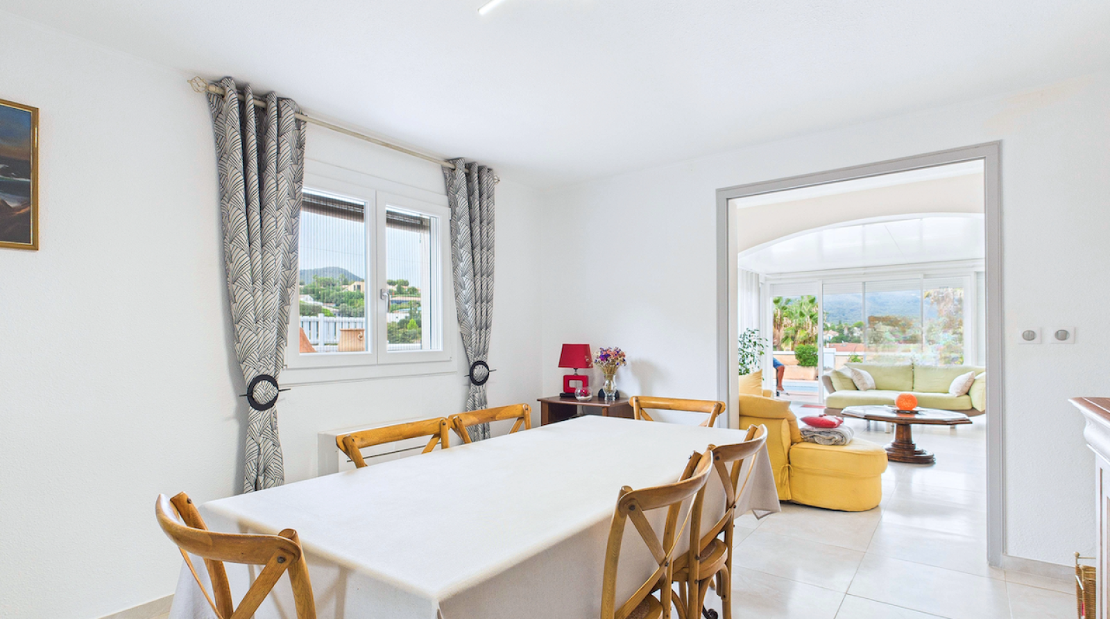 Imaginez un bien un peu hors du commun à Carqueiranne, un mélange entre villa et appartement, où vous vivez à deux pas de la plage. On ne va pas dire “pieds dans l’eau”, mais vous pouvez quand même y aller en quelques secondes en maillot, savourer la proximité immédiate du sable et revenir tranquillement chez vous.